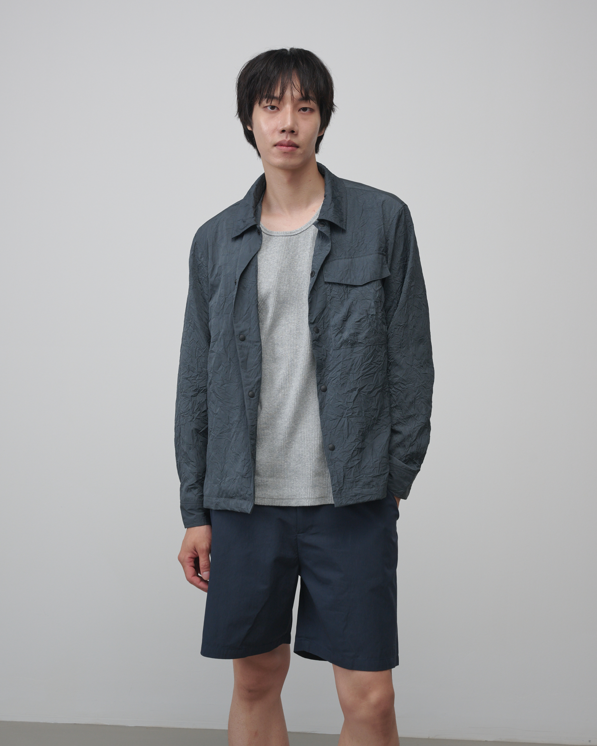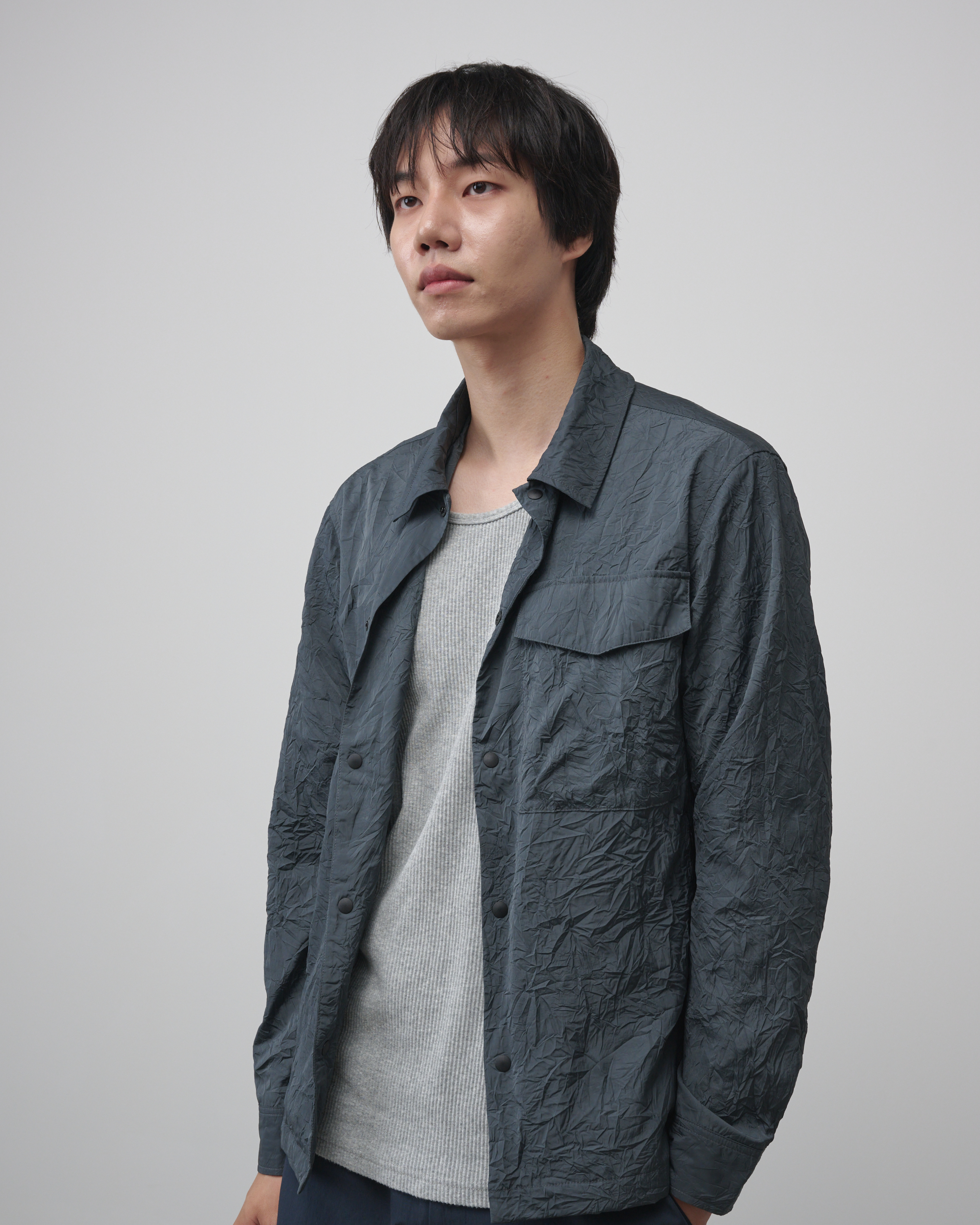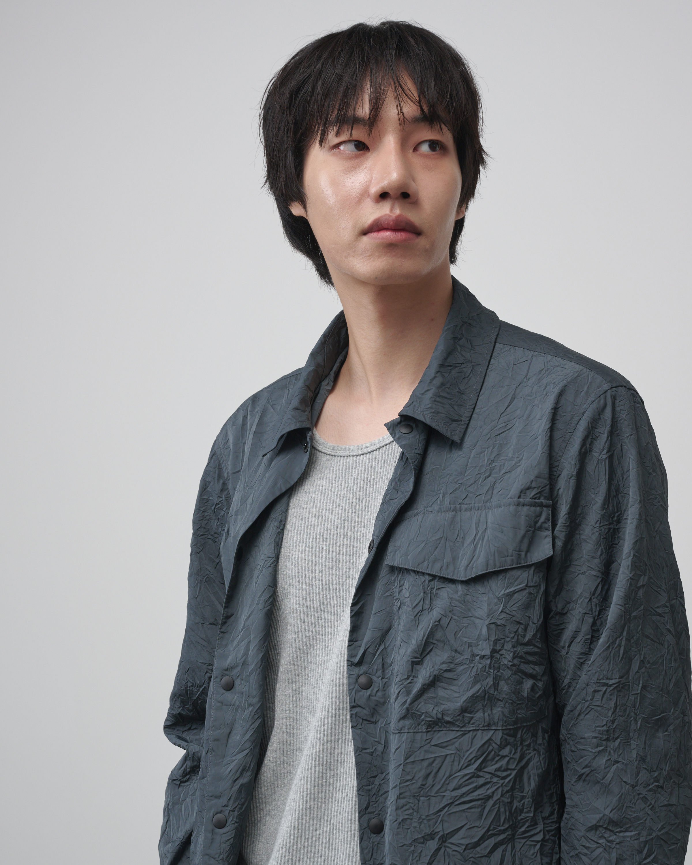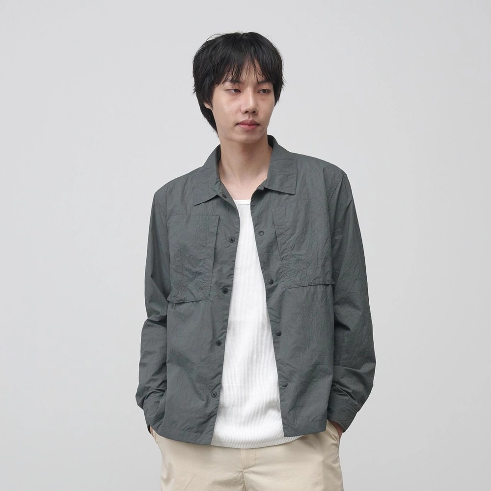 [LAMPO] 크리즈 오버셔츠는 네이비와 세이지 그레이 두 가지 컬러로 출시되었으며, 스트릿, 테크웨어, 고프코어 등 다양한 스타일에 자연스럽게 어울리는 경량 아우터입니다.