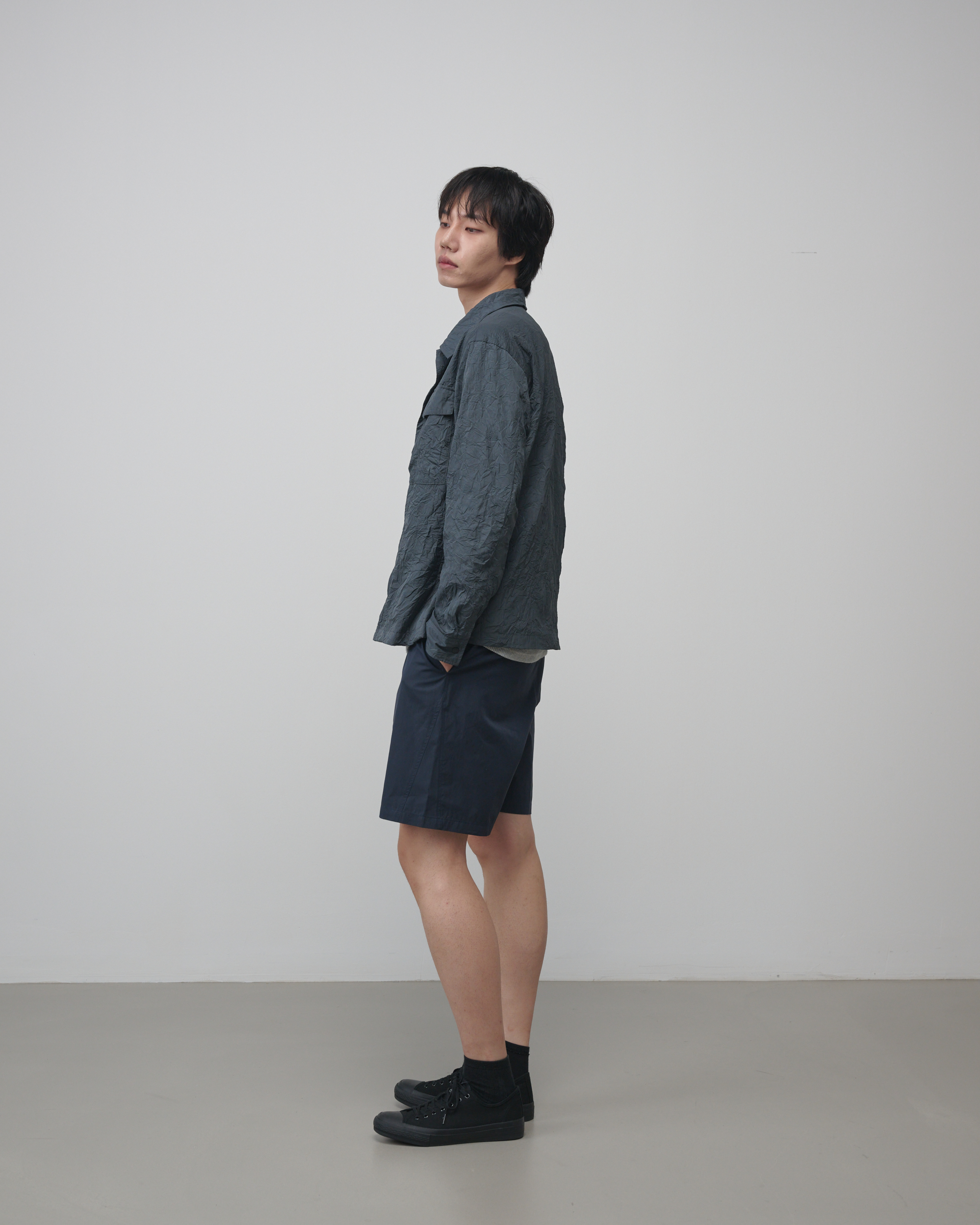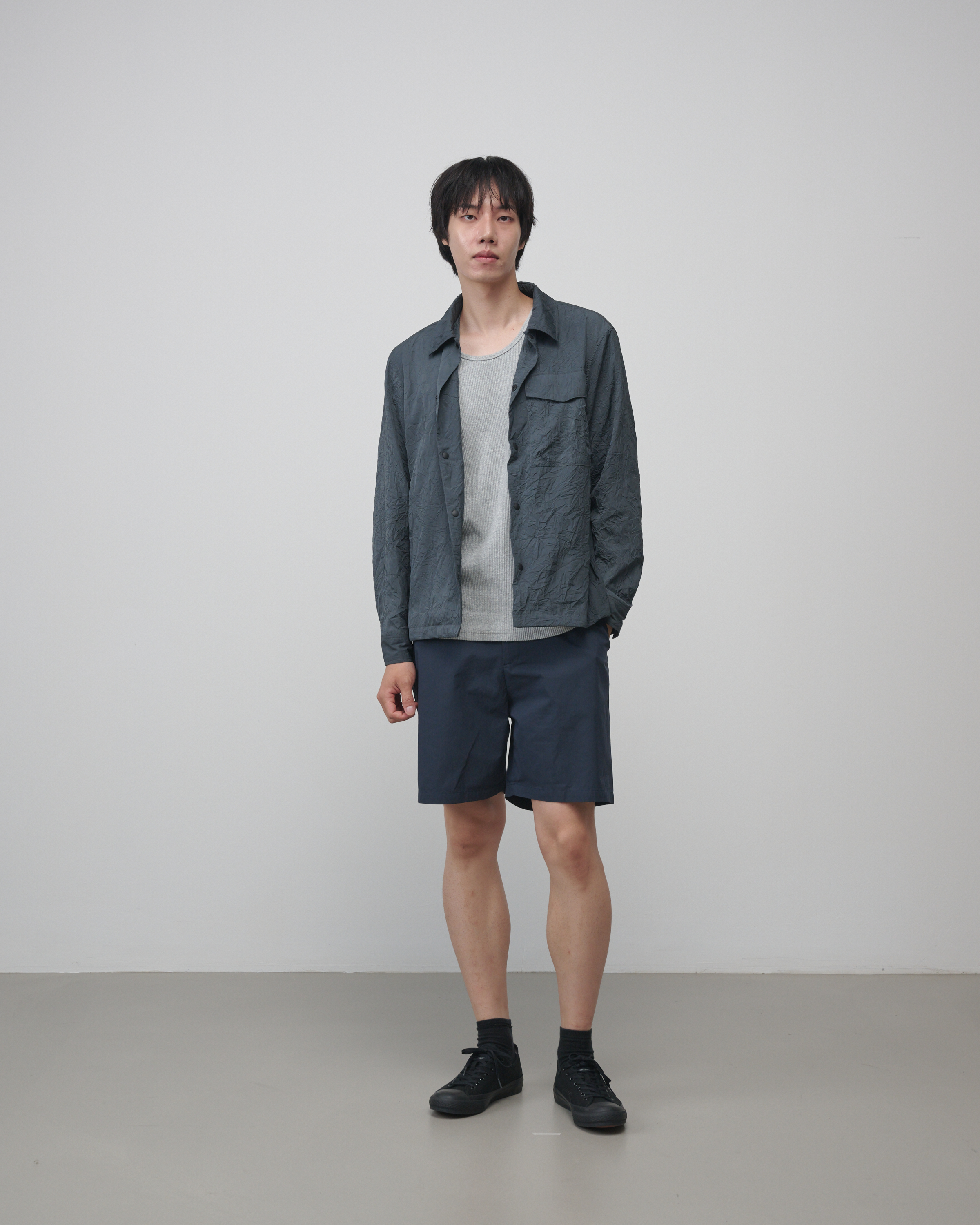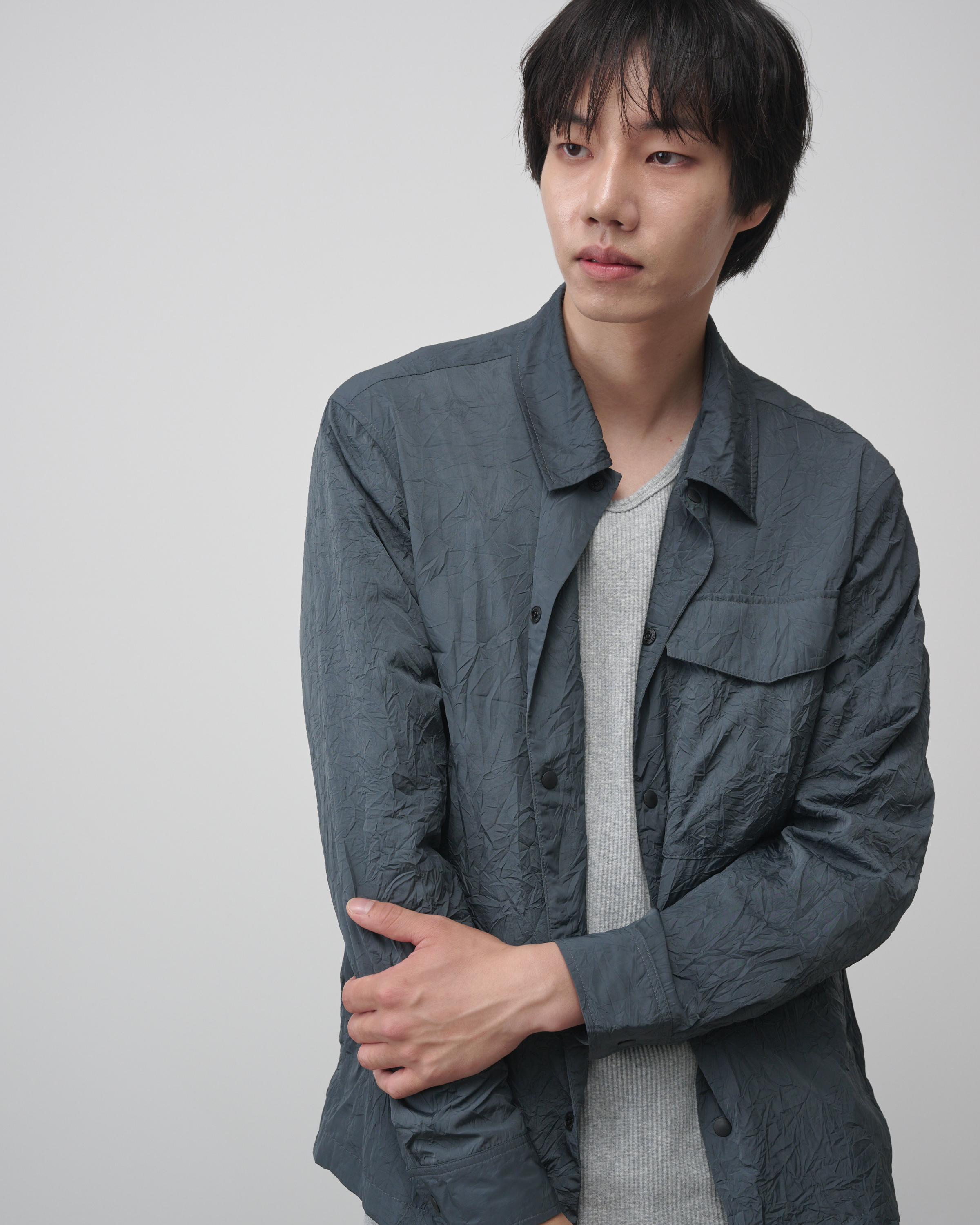 [LAMPO] 크리즈 오버셔츠는 네이비와 세이지 그레이 두 가지 컬러로 출시되었으며, 스트릿, 테크웨어, 고프코어 등 다양한 스타일에 자연스럽게 어울리는 경량 아우터입니다.